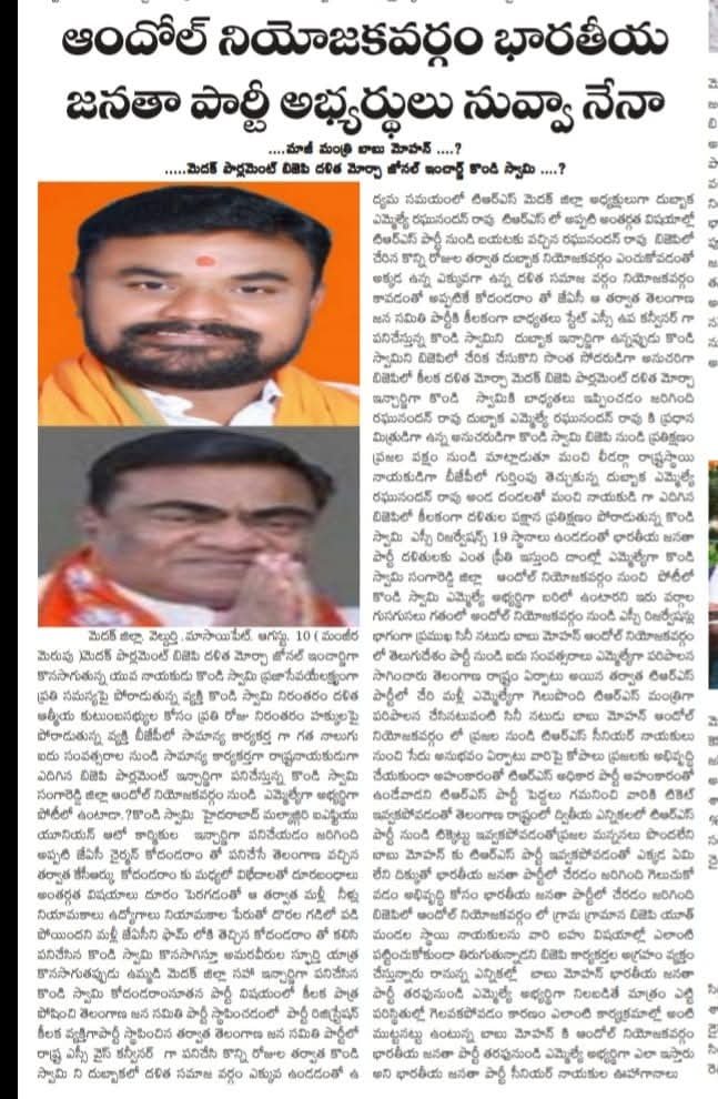 తరువాత దుబ్బాక నియోజకవర్గ రాజకీయ పరిణామాల నేపథ్యంలో